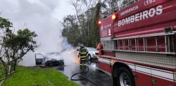 Veículo pega fogo na Rio-Santos na altura da Praia Dura em Ubatuba