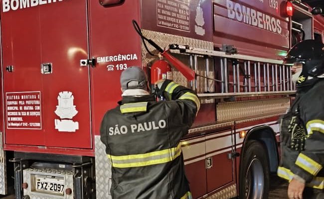 Se houver condições seguras e um extintor adequado, é possível realizar o combate inicial às chamas. A corporação ressalta que não se deve utilizar água em incêndios envolvendo baterias, pois isso pode agravar a situação.