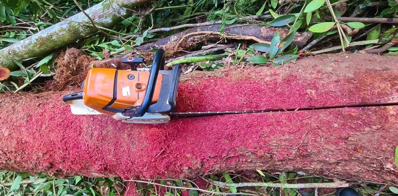 Ainda na região, os agentes notaram barulho de motosserra no final de uma trilha. Dois homens foram flagrados realizando corte de árvores nativas. Os suspeitos não possuíam licença de porte e uso dos equipamentos, nem autorização para corte das árvores. No total, 13 árvores nativas foram cortadas.