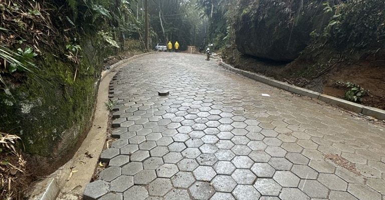 Segundo a prefeitura, a intervenção inclui a recuperação de trechos danificados e a implantação de aproximadamente um quilômetro de novo pavimento com bloquetes.