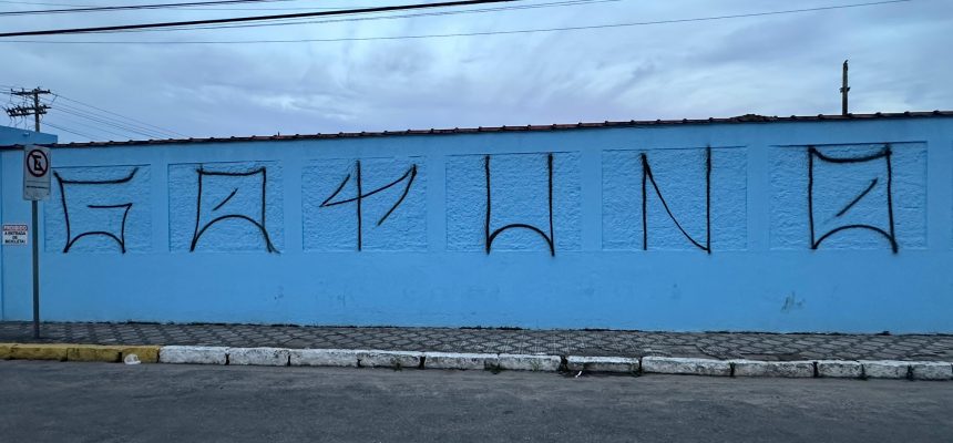 Um homem de 30 anos foi detido na madrugada desta quarta-feira (7) após ser flagrado por policiais militares enquanto praticava pichação no muro do Cemitério Municipal de Ubatuba. A ocorrência foi registrada durante patrulhamento de rotina na região central da cidade.