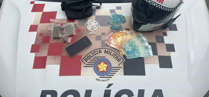 De acordo com a PM, ao notar a aproximação da viatura, o homem tentou fugir a pé, mas foi alcançado e abordado. Durante a revista pessoal, os policiais encontraram R$ 620 em dinheiro. Já na bolsa que ele carregava foram localizados 32 pinos de cocaína, 54 pedras de crack, nove porções de maconha e um aparelho celular modelo iPhone 12.
