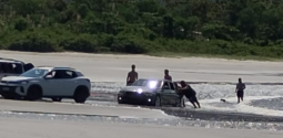 Carro de turista atola na areia e quase é levado pelo mar na Praia do