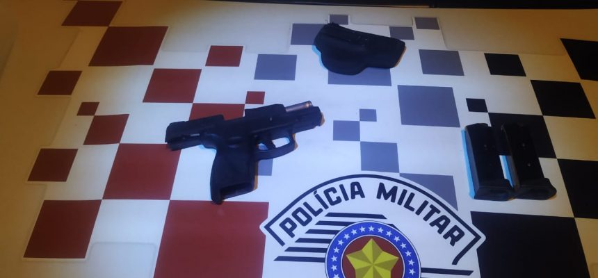 Na abordagem e busca pessoal foi encontrado na sua cintura, uma pistola Taurus calibre 9 mm carregada com 12 munições.