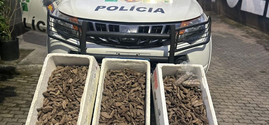 Uma operação da Polícia Militar Ambiental Marítima, em parceria com a Vigilância Sanitária, resultou na apreensão de quase 60 quilos de pepino-do-mar, espécie criticamente ameaçada de extinção, no bairro Silop, em Ubatuba. Cerca de 3.500 exemplares foram encontrados sendo preparados para comercialização irregular.