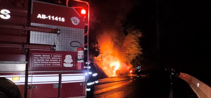 Um veículo pegou fogo durante a subida da Serra Oswaldo Cruz (SP-125), em Ubatuba, na noite desta segunda-feira (27). O incêndio aconteceu por volta das 18h30 e não houve vítimas.